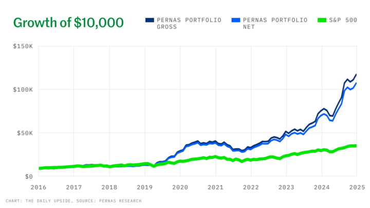 The results? 31.4% returns annualized per year for the Pernas Portfolio, crushing the S&P’s 15.1%.