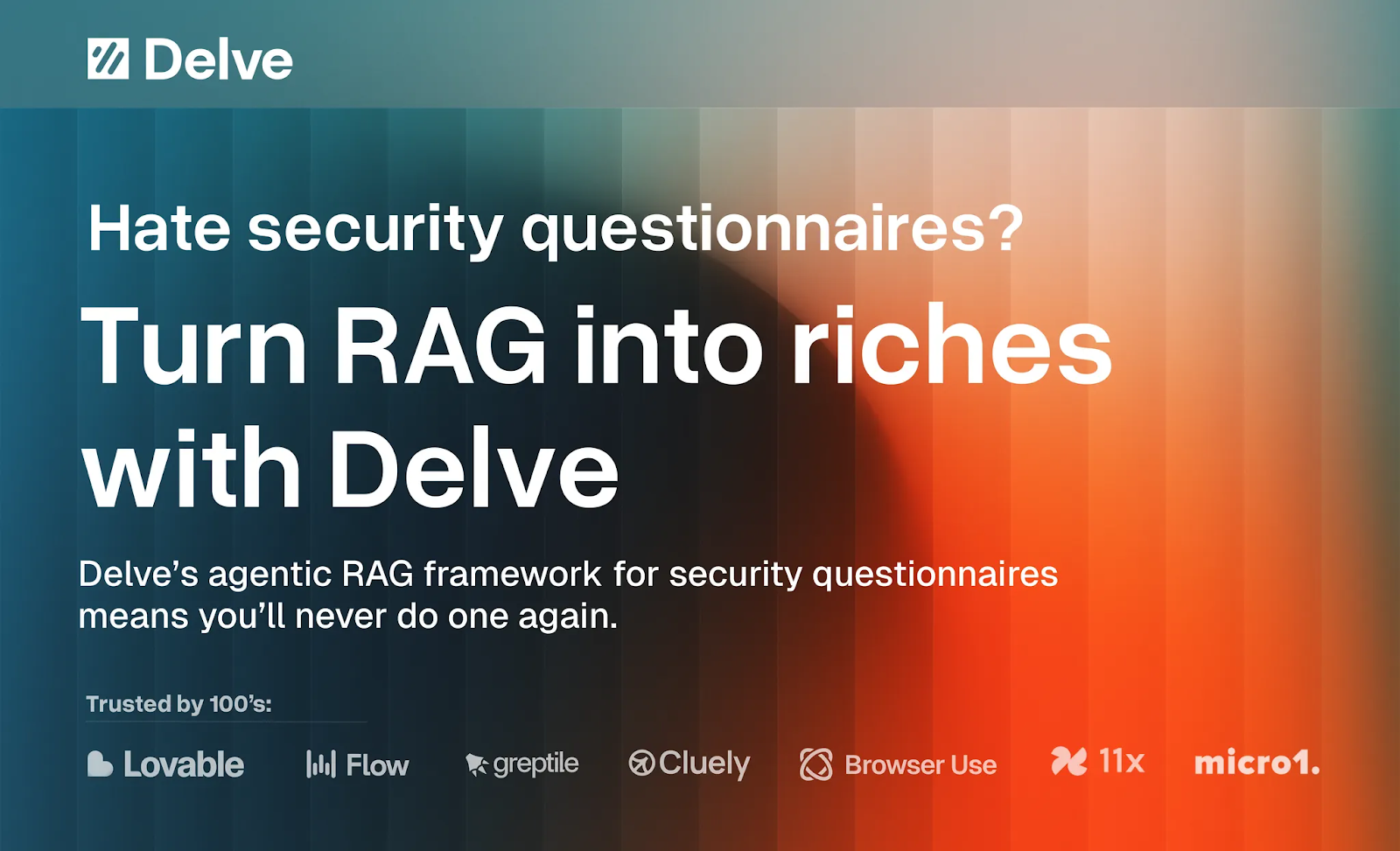 Turn RAG Into Riches With Delve’s AI For Security Questionnaires. Hate endless security questionnaires? Delve’s AI handles them for you — pulling evidence, resolving conflicts and writing bulletproof answers. Trusted by Lovable, Bland and Micro1 to pass F50 reviews fast. Get $1,000 off SOC 2, HIPAA, and GDPR with code DAILYUPSIDE1KOFF. Book a demo with Delve.